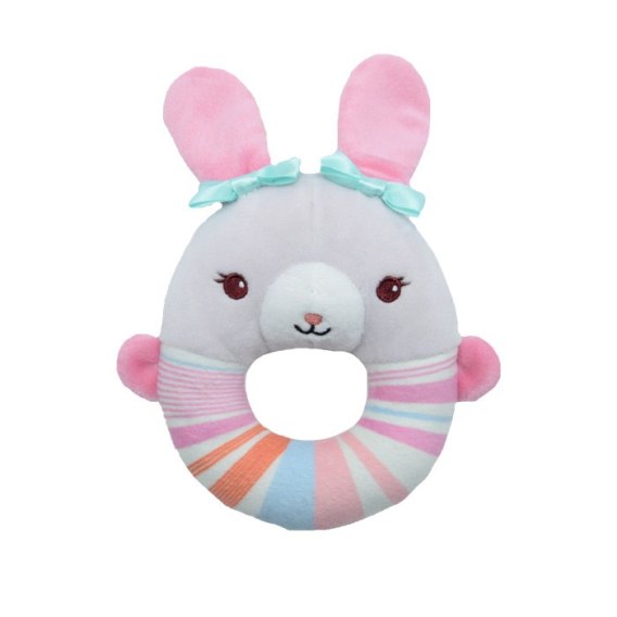 AXIOM 9472 Grzechotka Króliczek różowy z niebieskimi kokardkami 12 cm