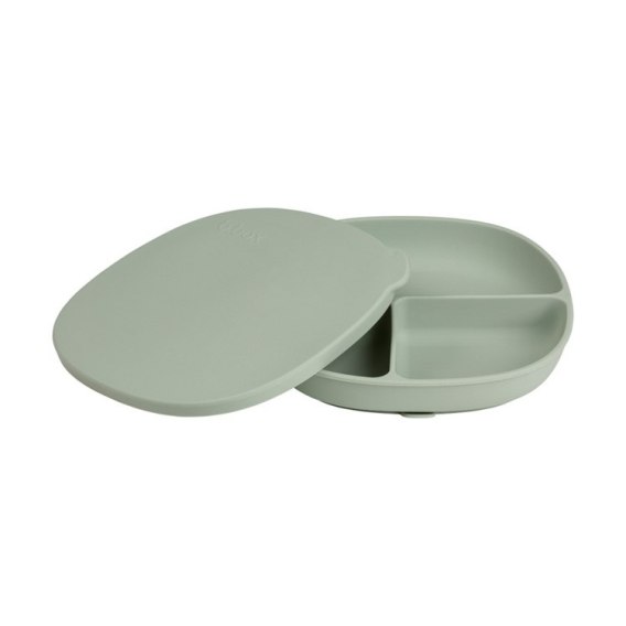 Szałwiowy talerz silikonowy dla dzieci z przyssawką i pokrywką od b.box!