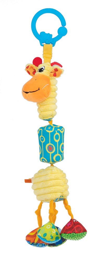 Ślicznotka Gabi ma najpiękniejszą szyję z wszystkich luzaków! Zdobią ją kolorowe wzorki, a przy każdym poruszeniu się dzwoni głębokim, metalicznym dźwiękiem. Jakby tego było mało, ta imponująca szyja pozwala Gabi obracać się o 360 stopni! Nic więc dziwnego, że podczas spacerków, kiedy smagają ją łagodne podmuchy wiatru, dzwoni z radości, podziwiając świat z poziomu dziecięcego wózeczka. Żyrafka stworzona została z materiałów o różnej fakturze, dzięki czemu zainteresuje maluchy i pomoże rozwijać ich zdolności poznawcze.