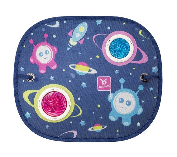 Zasłonki Benbat służą do ochrony przed szkodliwymi promieniami UV w samochodzie. Nie blokują widoczności na zewnątrz. Przyciągają uwagę dziecka kolorowymi refleksami świetlnymi. Zasłonki posiadają uniwersalne zaczepy pasujące do większości szyb samochodowych. Mocowane są za pomocą silikonowych przyssawek.