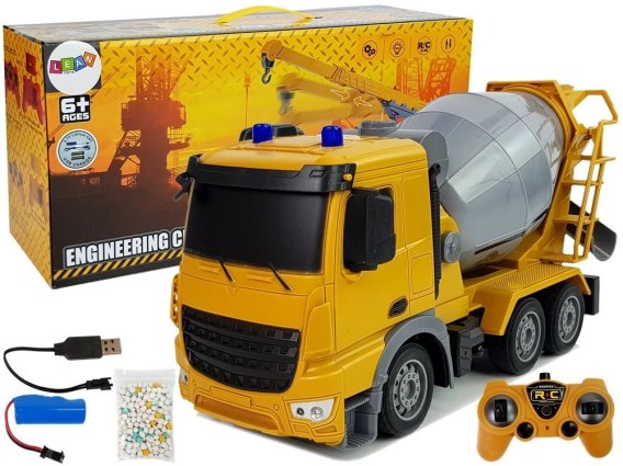 Betoniarka zasilana jest baterią 3,7 V, która dołączona jest do zestawu. Do pilota należy użyć 2 baterii "AA" 1,5 V (brak w zestawie). Zabawka przeznaczona jest dla dzieci powyżej 6. roku życia. Zestaw posiada certyfikat CE i jest zgodny z normą EN 71. Zapakowany jest w kartonik z przezroczystą witrynką, dzięki czemu nadaje się idealnie na prezent.