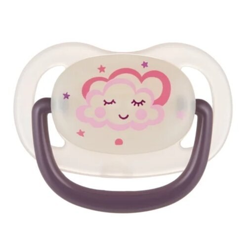 Smoczek uspokajający NIGHT DREAMS wykonany z najwyższej jakości, bezzapachowego i bezsmakowego silikonu. Wyposażony został w gumkę o anatomicznym kształcie. Smoczek dobrze odpowietrza się, dzięki specjalnym otworom wentylacyjnym na tarczce. Posiada świecącą tarczkę, która ułatwia znalezienie smoczka w ciemności. Nie zawiera BPA. Dostępny w kilku kolorach. Przeznaczony dla dzieci w wieku 18 m+.