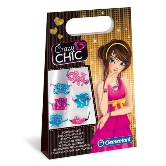 Kreatywny zestaw dla dziewczynek do tworzenia bransoletek i naszyjników ze słowami w stylu Crazy Chic. Zestaw zawiera rzemyki, kamyki i kolorowe brokaty idealne do tworzenia niepowtarzalnych błyskotek. Zadaniem dziewczynek jest ozdobienie ich według własnego pomysłu dołączonymi do zestawu dodatkami i napisami. Czas zabłysnąć!