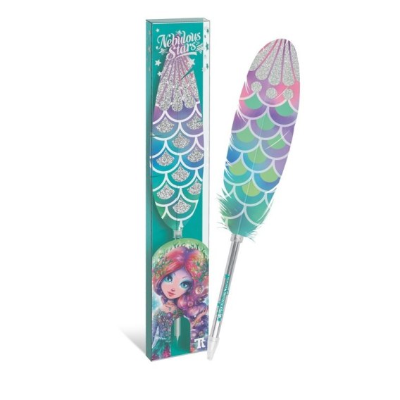 Niezwykle oryginalny gadżet prosto z magicznej krainy Nebulous Stars - długopis żelowy zwieńczony piórem. Nadrukowany, kolorowy wzór i ozdobne wykończenie nadają mu niepowtarzalnego charakteru. To prawdziwa gwiazda wśród przyborów szkolnych!