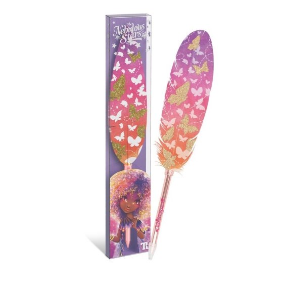 Niezwykle oryginalny gadżet prosto z magicznej krainy Nebulous Stars - długopis żelowy zwieńczony piórem. Nadrukowany, kolorowy wzór i ozdobne wykończenie nadają mu niepowtarzalnego charakteru. To prawdziwa gwiazda wśród przyborów szkolnych!