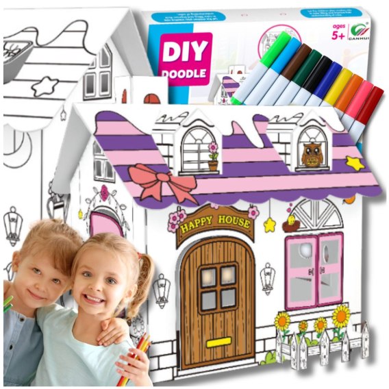 DOMEK SKŁADANY DLA DZIECI DO MALOWANIA KOLOROWANIA KREATYWNA ZABAWA PISAKI