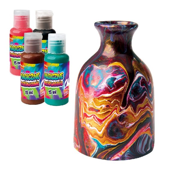 - w zestawie: 1 x wazon do pomalowania, 1 x kubeczek do odmierzania, 1 x papierowy talerzyk, 1 x wodoodporna mata, 1 x para foliowych rękawiczek, 4 x farbka 15 ml;