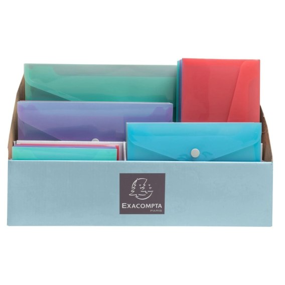 Ekspozytor z 60 kopertami na zatrzask Chromaline Pastel marki Exacompta: