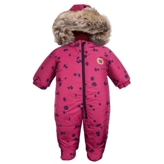 Kombinezon zimowy z kolekcji Dogs&Spots. Kombinezon spawdzi się idealnie podczas zimowych dni. Wykonany z tkaniny odzieżowej stanowiącej doskonałą ochronę dziecka przed chłodem, deszczem oraz wiatrem. Posiada dodatkową warstwę ocieplacza. Wewnątrz wyłożony jest bawełną. nbsp;