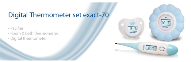 LUVION Thermometer Set Exact 70 - to jedyny zestaw termometrów na rynku, który umożliwia kompletny pomiar temperatury tam gdzie tego potrzebujesz (temperatura dziecka, temperatura w pomieszczeniach, temperatura wody do kąpieli).