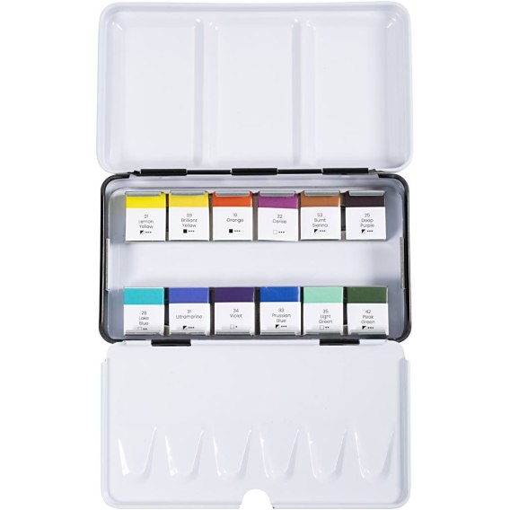 Najwyższej jakości farby akwarelowe o wysokim napigmentowaniu i doskonałej światłotrwałości.