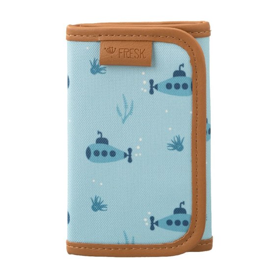 Portfel z praktycznymi kieszonkami , dodatkową kieszonką na suwak i zapięciem na rzep. Posiada dodatkowo metalowe kółko do przypięcia kluczy.