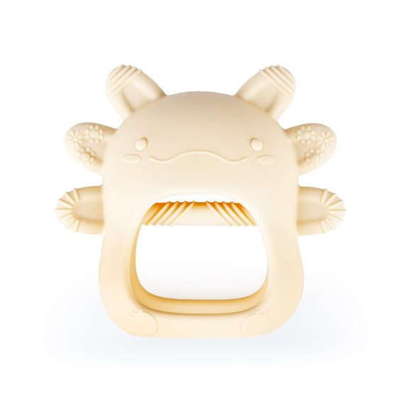 Ten uroczy stworek to super pomocnik w ząbkowaniu! Posiada wypustki, które podczas gryzienia będą delikatnie masować dziąsła maluszka, przynosząc mu tym samym ulgę. Kształt tego innowacyjnego gryzaka pozwala na włożenie do środka rączki, gdzie ukryty jest poprzeczny, fakturowany uchwyt. Ta nieregularna powierzchnia zapobiega niekontrolowanemu wyślizgiwaniu się zabawki z ręki malucha. Gryzak wykonany jest z silikonu, dzięki czemu bez trudu można go wyczyścić.