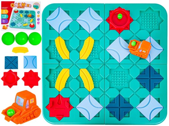 Zasady zabawy:Jest to gra logiczna, która polega na ułożeniu toru w taki sposób aby koparka przejechała całą trasę i dotarła do mety. Koparka posiada kulkę, którą bezpiecznie musi dowieźć na koniec trasy. To super zabawa, która wciąga do zabawy nie tylko małych, ale i dużych. Możliwości ułożenia trasy jest naprawdę sporo - jest to więc zabawa, która nie znudzi się szybko. |