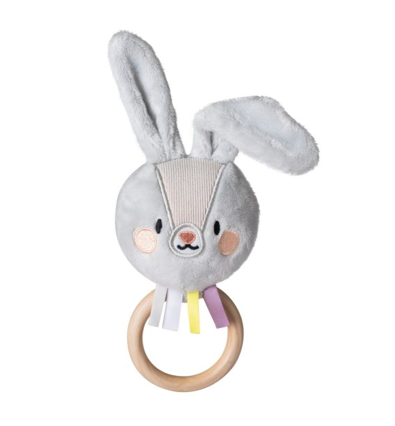 Grzechotka Króliczek Rylee - naturalna zabawa z drewnianym pierścieniem 🌿🐰 dla rozwoju zmysłów i motoryki malucha 👶. Dzięki przyjaznym dla dziecka materiałom i drewnianemu pierścieniowi, wspiera rozwój małej motoryki, koordynacji ręka-oko oraz stymulację sensoryczną. Bezpieczna i ekologiczna zabawka, idealna dla maluszków!