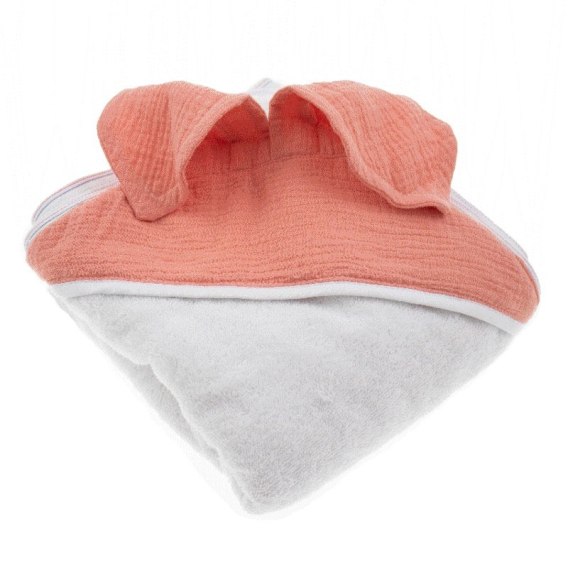 Hi Little One - Ręcznik z kapturem 100 x 100 BUNNY hooded bath towel Salmon
