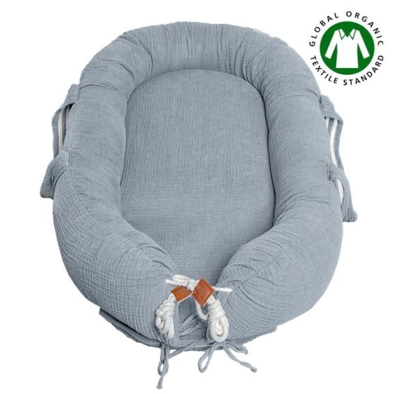 Ergonomiczny i bezpieczny kokon-gniazdko dla Noworodka z oddychającej, organicznej wysokojakościowej BIO bawełny muślinowej.