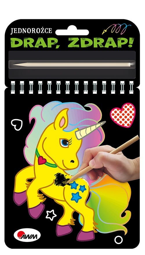 Zdrapując warstwę specjalnej farby, dziecko odkrywa obrazek jednorożca, który jest pod nią ukryty. Taka twórcza zabawa daje mnóstwo radości.