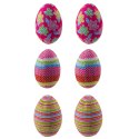 Jajka wielkanocne na druciku to doskonały sposób na stworzenie wyjątkowej, świątecznej atmosfery. Zestaw zawiera 2 jajka w kropeczki, 2 w paski i 2 w kwiaty, co pozwala na stworzenie różnorodnej i efektownej kompozycji.