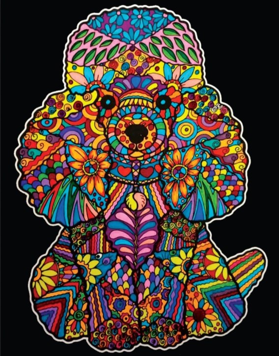Wypukłe linie ułatwiają nie wychodzenie za linie, a na głębokiej matowej czerni nie widać drobnych potknięć przy kolorowaniu. Welwet nałożony jest na papier przyklejony do sztywnej tektury, dzięki czemu obraz nie wymaga ramki jeśli zdecydujemy się go powiesić na ścianie.