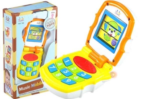 Zabawkowy telefon jest bardzo kolorowy i barwny. Pozbawiony ostrych elementów i zakończeń gwarantuje bezpieczną zabawę. Zabawka została wykonana z niegroźnego dla dzieci tworzywa, które jest bardzo wytrzymałe i solidne. Po wciśnięciu klawiszy komórki wydobywają się z nich wesołe dźwięk, co dodatkowo powoduje zaświecanie się antenki. Przycisk znajdujący się w centralnym miejscu zabawki uruchamia przyjemną dla ucha melodyjkę, a także zabawne miganie melodyjki. Warto wybrać ten produkt, ponieważ posiada certyfikat CE, a jego design z pewnością spodoba się każdemu dzieciakowi.