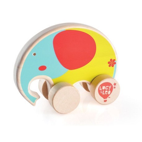 Kolorowy, drewniany słonik na kółkach dla malucha LUCY & LEO