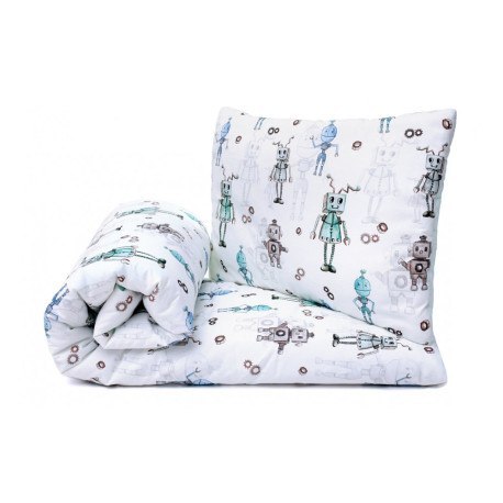 Komplet pościeli z wypełnieniem 100x135cm ROBOTY Z myślą o potrzebach maluchów firma PULP wybiera trwałe i ekologiczne włókno bambusowe oraz włókno produkowane z alg morskich, a także bawełnę ekologiczną. Dzięki wykorzystaniu tych surowców pochodzenia naturalnego tworzą produkty, które spełniają szereg ważnych funkcji zdrowotnych , a przy tym są ładnie i estetycznie wykonane. W PULP najważniejsze jest bezpieczeństwo, wygoda i komfort dziecka . Odzwierciedleniem tej wizji są wysokiej klasy produkty z ekologicznej przędzy bambusowej oraz ekologicznej bawełny. CHARAKTERYSTYKA Komplet pościeli bawełnianej z anty-alergicznym wypełnieniem. Pościel dla dzieci z wypełnieniem wszytym na stałe to fenomenalne rozwiązanie dla rodziców ceniących wygodę użytkowania - można je często prać, w całości wrzucając do pralki. Dzięki temu otrzymujemy gwarancję czystości, która jest niezwykle ważna dla alergików. Pościel wykonana jest z dwóch stron z wysoko-gatunkowej 100% bawełny. Ciepłe I puszyste wypełnienie sprawia,że maluszek czuje się w niej doskonale o każdej porze roku. Miękkie i leciutkie wypełnienie to atestowana, certyfikowana włóknina silikonowa, która przepuszcza powietrze zapewniając właściwy dostęp tlenu, nie uczula, i nie zatrzymuje wilgoci dzięki czemu nasz maluszek ma doskonały komfort snu. Komplet będzie niezapomnianym, stylowym prezentem na Baby Shower, urodziny czy inną okazję. Pościel dziecięca PULP ma piękny, nietuzinkowy design, który doskonale wkomponuje się w nowoczesny wystrój wnętrza modnej mamy. Produkt szyty w Polsce, ręcznie z wykorzystaniem najlepszych jakościowo materiałów. Wszystkie produkty PULP zawierają certyfikat Oeko-Tex Standard 100 (dopuszczone do bezpośredniego kontaktu ze skórą noworodka). Pranie bez obaw o utratę jakości: prać w temperaturze 40°, program delikatny, lekkie wirowanie, można prasować, nie stosować wybielaczy, nie suszyć w suszarce bębnowej. Rozmiar: Uniwersalny rozmiar nadaje się zarówno dla niemowlaka, jak I dla kilku-letniego dziecka. W skład zestawy wchodzi kołderka o wymiarach 100 x 135 cm / +/- 2 cm oraz poduszka 40 x 60 cm / +/- 2cm Skład: 100% najlepsza gatunkowo bawełna Wypełnienie to atestowana, certyfikowana włóknina silikonowa 10315-214