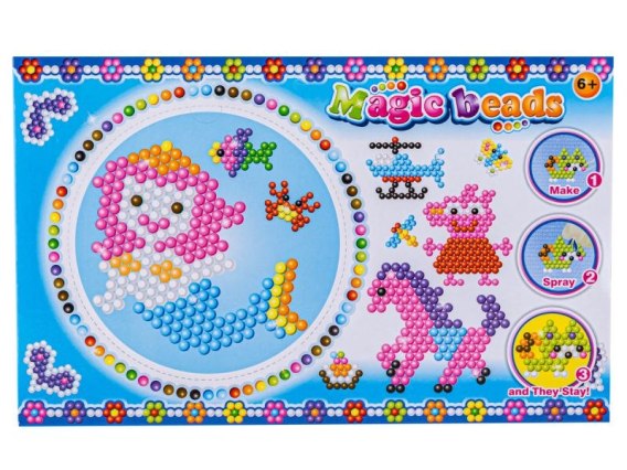 Koraliki wodne to kolorowe kuleczki, które można ze sobą dowolnie łączyć, tworząc coraz to nowe kształty, postacie, figury czy przedmioty. Koraliki zwiększają swoją przyczepność za pomocą odrobiny wody.