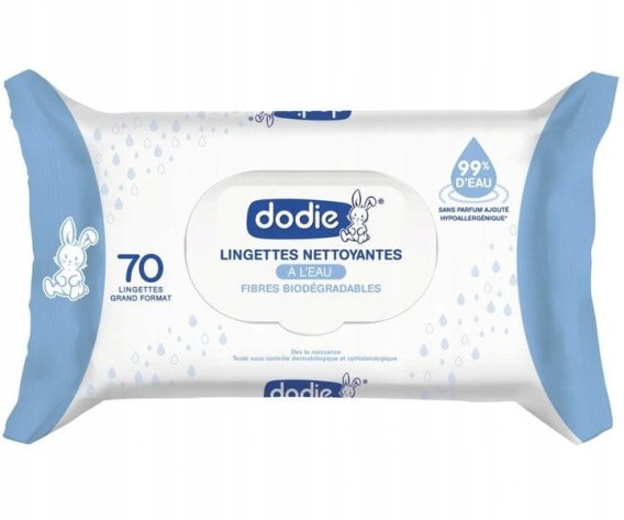 Biodegradowalne chusteczki Dodie delikatnie oczyszczają i pielęgnują delikatną skórę maluszka. Hypoalergiczna formuła oraz czysty skład z 99% zawartością wody, zostały zaprojektowane specjalnie z myślą o wrażliwej skórze niemowląt.