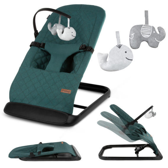LARO Kidwell Bujaczek leżaczek + pałąk z zabawkami dla dzieci 0m+ do 9kg - Green/Black