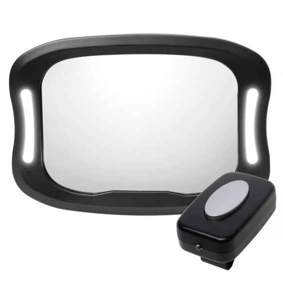 Obserwuj swoje dziecko podczas jazdy, nawet w ciemności. Praktyczne lusterko z oświetleniem LED pozwala zobaczyć dziecko nawet w złych warunkach oświetleniowych. Lusterko jest nietłukące i można je łatwo zamontować na zagłówkach foteli. Ma długą żywotność baterii i może być sterowany za pomocą pilota (lusterko 3x AA, pilot - 2x AAA, baterie nie są dołączone do zestawu).