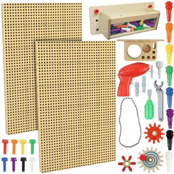 - - Uniwersalność - gęsto rozmieszczone otwory są kompatybilne z szeroką gamą edukacyjnych akcesoriów, od pikselowych mozaik po ruchome zębatki.