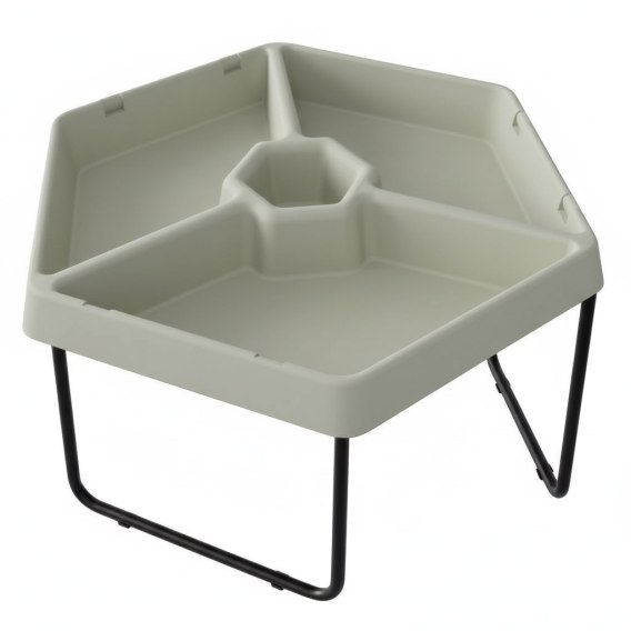 • - Sześciokątna taca podzielona na 3 oddzielne komory - idealna do prowadzenia trzech aktywności w tym samym czasie lub pracy z trzema różnymi substancjami.