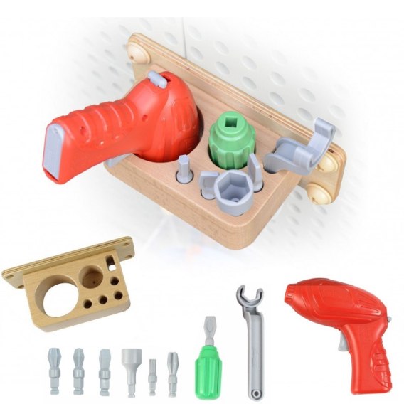 Praktyczny zestaw narzędzi dla dzieci, dzięki którym zabawa ze ścianką Masterkidz STEM będzie dużo ciekawsza! W zestawie śrubokręt z 7 wymiennymi końcówkami, klucz, wkrętarka, oraz półeczka do przechowywania. Narzędzia służą do przykręcania i odkręcania śrub Masterkidz. Zabawka ćwiczy motorykę dzieci, oraz uczy je poprawnego używania podstawowych narzędzi.