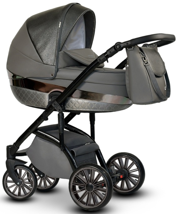 Wózek MODO EXCLUSIVE to połączenie ekoskór z materiałem imitującym lustrzaną powierzchnię, wyróżnia go w wyjątkowy styl.