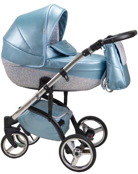Wózek MODO EXCLUSIVE to połączenie ekoskór z materiałem imitującym lustrzaną powierzchnię, wyróżnia go w wyjątkowy styl.
