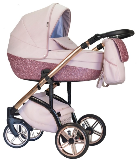 Wózek MODO EXCLUSIVE to połączenie ekoskór z materiałem imitującym lustrzaną powierzchnię, wyróżnia go w wyjątkowy styl.