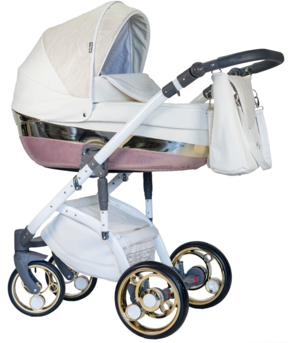 Wózek MODO EXCLUSIVE to połączenie ekoskór z materiałem imitującym lustrzaną powierzchnię, wyróżnia go w wyjątkowy styl.