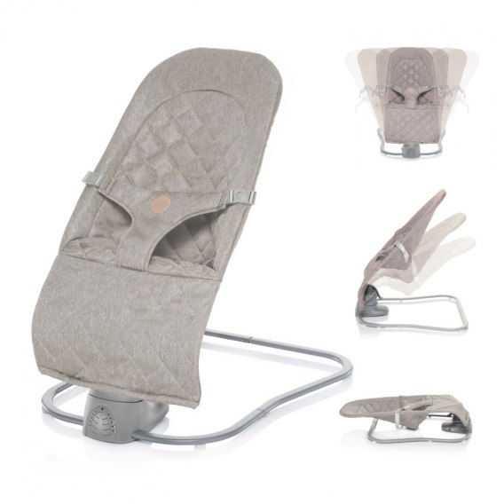 Solidna metalowa konstrukcja zapewnia maksymalną stabilność i wsparciepodczas bujania. Minimalistyczny, nowoczesny design podkreśla wysokiej jakości tkanina z diamentowymi przeszyciami. Leżaczek występuje w dwóch wersjach kolorystycznych w odcieniach szarości, dzięki czemu będzie pasował do każdego wnętrza. Dołączone miękkie paski zapewniają bezpieczeństwo dziecka.