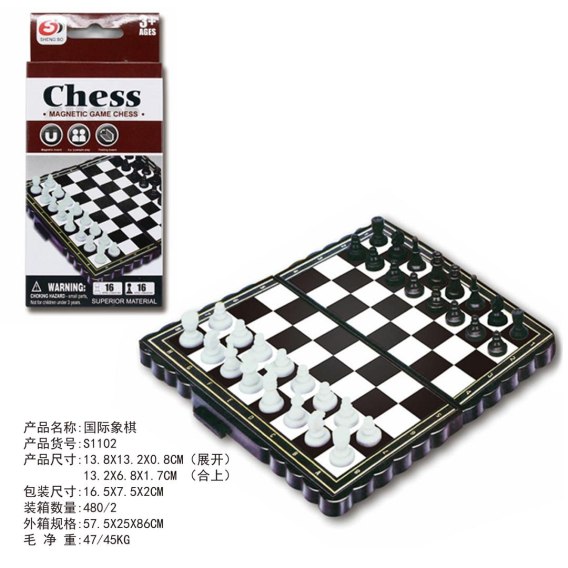 Magnetyczna gra planszowa szachy dla dzieci od trzeciego roku życia. Gra składa się z rozkładanej planszy i pionków magnetycznych. Dzięki magnetycznym pionkom w grę można grać wszędzie bez obawy o zgubienie pionków. Składana plansza nie zajmuje dużo miejsca. Kompaktowy rozmiar praktyczny do przenoszenia. Gra w szachy będzie idealna dla osoby w każdym wieku. Poprawia myślenie, planowanie strategiczne, zdolność oceny sytuacji.