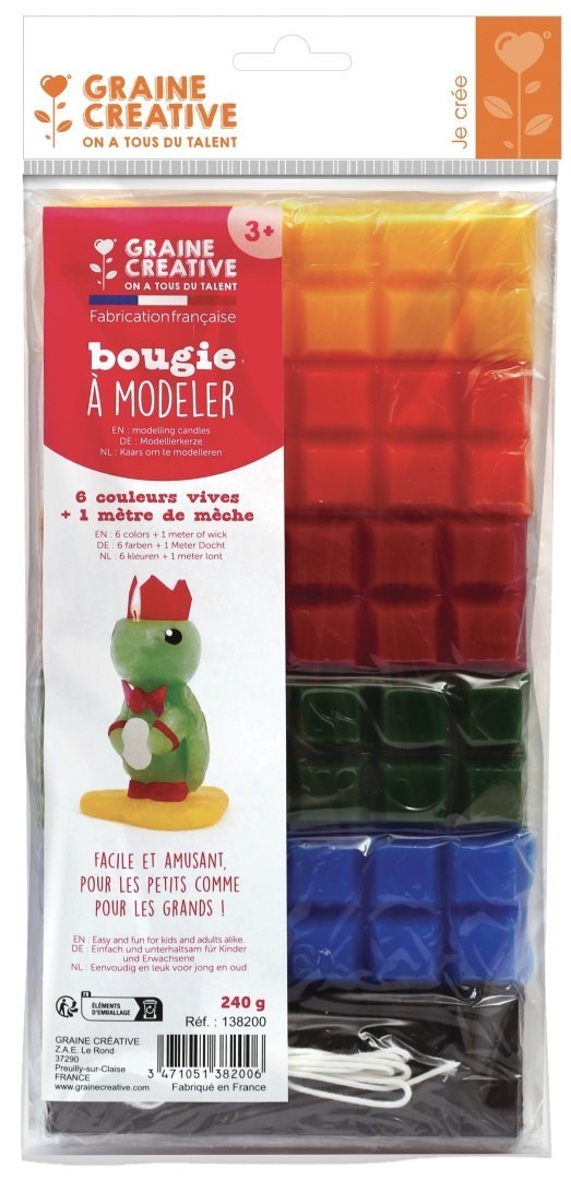 Zestaw zawiera 6 kolorów wosku w wyrazistych barwach, biały knot i instrukcję obrazkową. Wosk ugniatamy w rękach i lepimy z niego figurki oraz różne kształty tak samo jak z plasteliny.