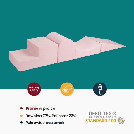 MeowBaby to innowacyjna firma specjalizująca się w produkcji akcesoriów dziecięcych od 2017 roku. Misją firmy jest tworzenie wyjątkowych, ręcznie wykonanych produktów, które spełniają najwyższe standardy bezpieczeństwa i estetyki. MeowBaby® Piankowy Zestaw do Zabawy SZARONIEBIESKI 4 elementy bez basenu Zabawa ma wielki wymiar! Teraz możesz stworzyć plac zabaw we własnym domu! Nasze klocki rekreacyjne nie tylko pobudzają dziecięcą wyobraźnię, ale uczą kreatywnego myślenia. Zestaw modułów może służyć do zabawy, jak również do ćwiczeń, do tworzenia torów przeszkód czy przestrzennych konstrukcji. Poszczególne elementy mogą służyć jako pufki czy siedziska. Antyalergiczna pianka poliuretanowa, która została wykorzystana do produkcji zestawu charakteryzuje się niewielką gramaturą i wysoką odpornością na odkształcenia, co czyni produkt bezpiecznym dla dziecka, a zarazem wyjątkowo praktycznym. Poszczególne klocki cechuje lekkość, dlatego w łatwy sposób można je przestawiać w inne miejsca. Wszystkie elementy zestawu mają zdejmowany pokrowiec, co ułatwia upranie w pralce i utrzymanie toru przeszkód w czystości. Piankowy zestaw do zabawy stanowi doskonały element wyposażenia żłobków, przedszkoli, placów zabaw ale, przede wszystkim ze względu na wyjątkowo miły w dotyku pokrowiec - także pokoi dziecięcych. Prosty i minimalistyczny design tego produktu sprawia, że idealnie wkomponuje się w przestrzeń domu. Produkt przeznaczony jest dla dzieci w wieku 1-3 lat, do użytku wyłącznie pod opieką osoby dorosłej. Specyfikacja: Zestaw składa się z 4 elementów Wypełnienie: pianka poliuretanowa Pokrowiec: zapinany na zamek błyskawiczny Pokrowiec można prać w pralce w temperaturze 30°C MIĘKKIE I BEZPIECZNE - Wykonane z nietoksycznych materiałów piankowe klocki do wspinaczki zapewniają bezpieczne środowisko zabawy dla maluchów. MULTIFUNKCYJNE - Te miękkie elementy do zabawy można wykorzystać jako klocki budowlane, konstrukcje do wspinaczki, a nawet jako meble. TRWAŁE I STABILNE - Wysokiej gęstości pianka użyta do produkcji tych klocków do wspinaczki gwarantuje ich trwałość, co czyni je długoterminową inwestycją dla pokoju zabaw dziecka. ŁATWE W CZYSZCZENIU - Te piankowe klocki do wspinaczki są łatwe do prania, co czyni je tanim dodatkiem do każdego pokoju zabaw. WSPOMAGAJĄ ROZWÓJ MOTORYCZNY - Te miękkie elementy do zabawy pomagają maluchom poprawić równowagę, koordynację oraz rozwijać umiejętności motoryczne poprzez aktywną zabawę.