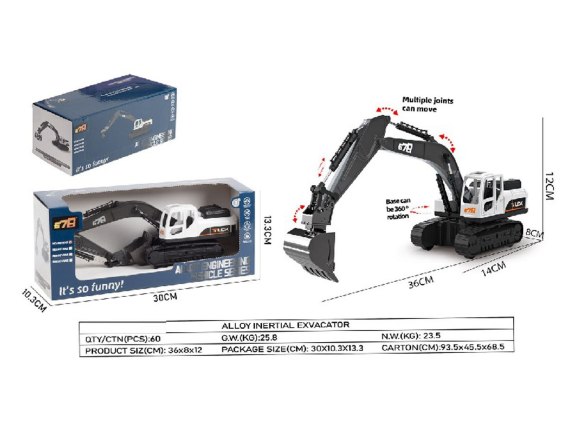 Funkcje: - dla dzieci od trzeciego roku życia, - wykonana z solidnego materiału: metal i plastik, - ruchome ramię, - ruchoma, metalowa łyżka, - obrotowa kabina o 360 stopni, - spodem znajdują się kółeczka do jazdy, - napęd na przednie koła. |