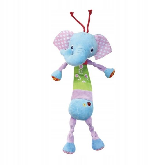 - Dodatkowo na głowie słonika znajdują się sznurki, za które można zabawkę przywiązać do dowolnego przedmiotu.