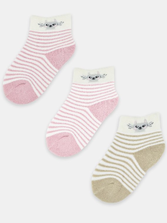 NOVITI SF024-G-01 Skarpety dziewczęce z puszystym ściągaczem kot mix 12-18m