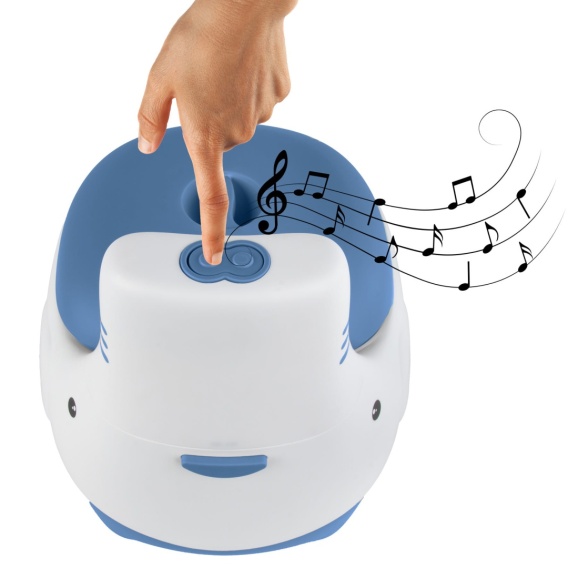 Wbudowany w oparcie przycisk uruchamia dźwięk spuszczanej wody, dzięki któremu dziecko korzysta z nocnika z zainteresowaniem i zaangażowaniem. Równocześnie przygotowuje dziecko do korzystania z prawdziwej toalety.