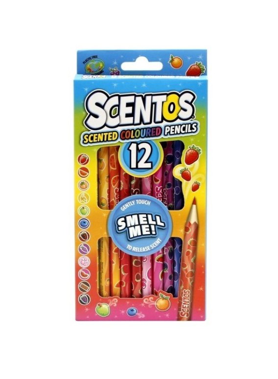 Owocowa eksplozja zapachu! Zestaw kryje w sobie dwanaście ołówkowych kredek, a każda z nich ma inny kolor. Poszczególnym kredkom odpowiada inny, słodki zapach, przywołujący na myśl owoce lub słodycze. O inspiracji zapachowej informuje nadruk na każdej z kredek.