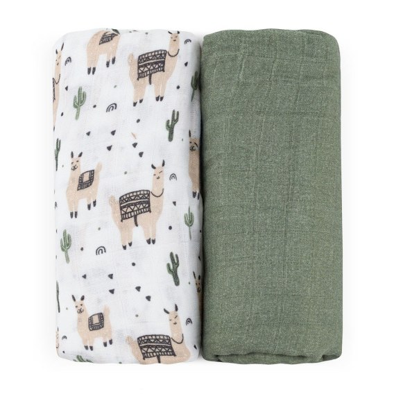 PETITE&MARS 417365 Zestaw otulaczy z muślinu bambusowego 2 szt. Misty Llama Vibes 120x120