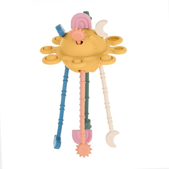 Wszechstronna zabawka sensoryczna w kształcie planety nie tylko stymuluje zmysły, ale także wspiera rozwój małych rączek. Ta niezwykła zabawka może pełnić rolę zarówno gryzaka, jak i narzędzia do rozwijania zdolności manualnych. Zawiera wiele elementów do eksploracji: przyciski do naciskania, silikonowe struny o zróżnicowanym stopniu trudności w ich przeciąganiu oraz ciekawe kształty związane ze zjawiskami atmosferycznymi, co gwarantuje długotrwałą i kreatywną zabawę.