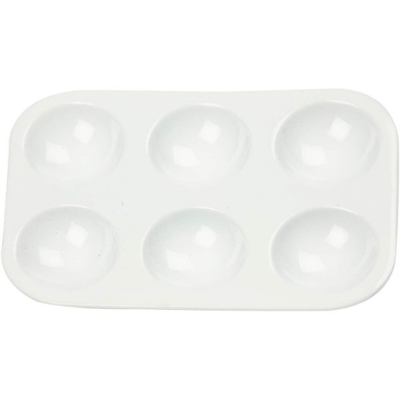 Posiada 6 zagłębień, służących do separowania różnych kolorów farb i mieszania ich uzyskując nowe odcienie. Świetna do użytku z farbami akrylowymi, które z łatwością można zmyć z palety wodą. Wygodne narzędzie pomocne przy malowaniu obrazów jak i przedmiotów, oraz mieszania nowych barw.